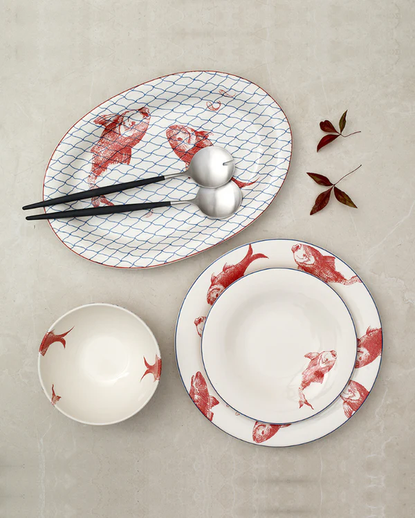 Peces is our most inspiring collection. Its red carp imagery symbolises the perseverance and determination shown by these fish on their challenging journey upstream to spawn. Bring personality to your dinner table with this inspiring design. Enjoy the complete collection or choose your favourite pieces to complement your dinner table.