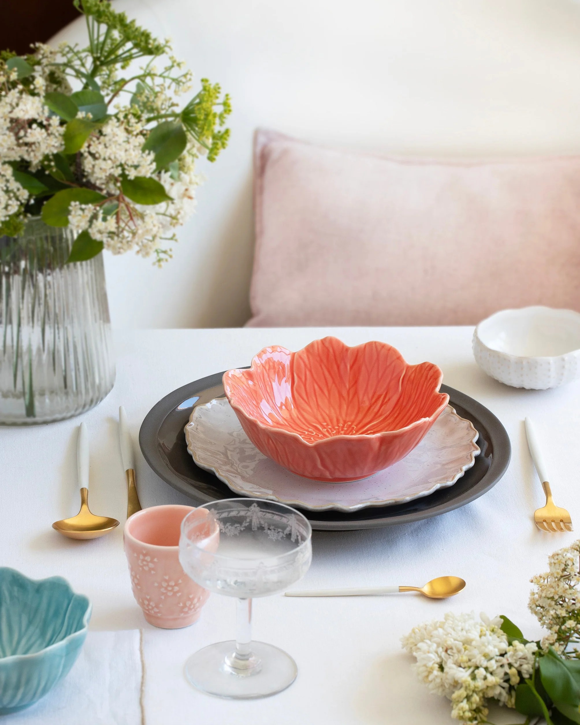 The Flora Limón Bowl by Bordallo Pinheiro is one of those pieces that instantly transforms a table: cheerful, bright and with a beautiful floral relief that you can feel as soon as you hold it in your hand.